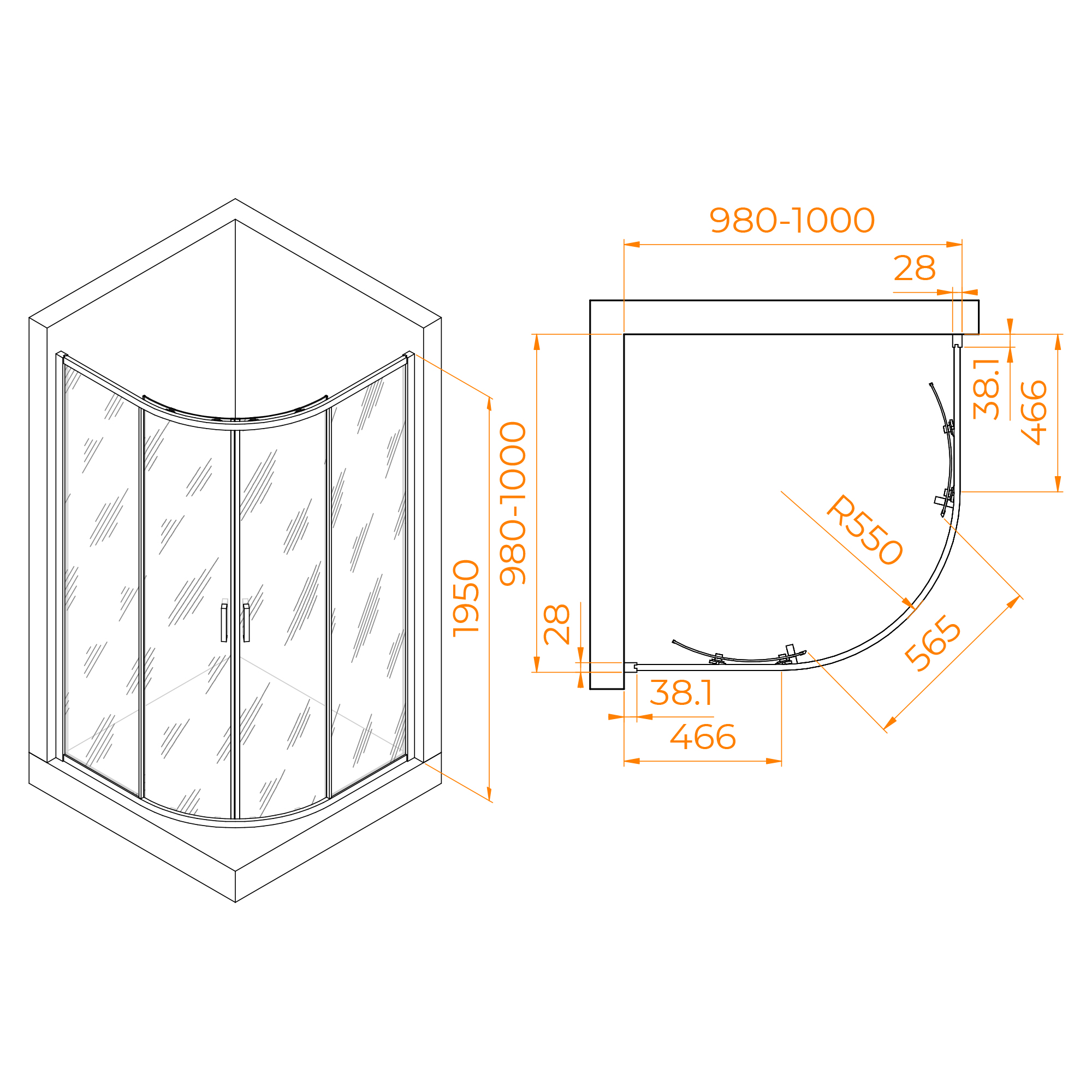 Душевой уголок, пятиугольный ECO-O-P-1-100-P-Cr 1000x1000x1950 Cezares